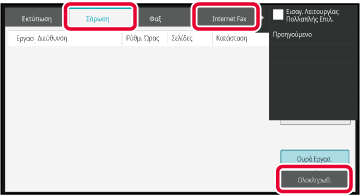 Πατήστε την καρτέλα [Σάρωση] ή την καρτέλα [Internet Fax] και, στη συνέχεια, το πλήκτρο [Ολοκληρωθ.].