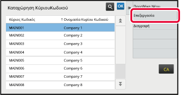 Πατήστε και επιλέξτε τον κύριο κωδικό που θέλετε να επεξεργαστείτε και, στη συνέχεια, πατήστε [Επεξεργασία] στον πίνακα ενεργειών.