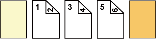 ![]() Makes a 2-sided copy on the first and second original pages for front cover, and also makes a 1-sided copy on the sixth original page for back cover. A 1-sided copy is made on the fifth original page. |