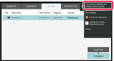 Pulse la pantalla de estado de los trabajos y, después,