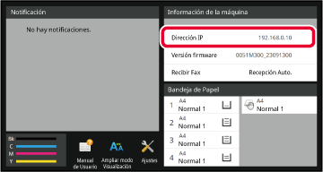 Inicie un explorador Web en un PC que esté en la misma red que la máquina y, a continuación, especifique la dirección IP de la máquina.