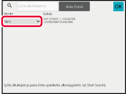 Kosketa ( ) kohdassa [Nimike] ja valitse etsittävä kohde [Alkukirj.], [Nimi] tai [Osoite].