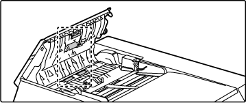 Ouvrez le chargeur automatique de documents et nettoyez la zone de numérisation des documents sur la vitre d'exposition avec un chiffon doux.
