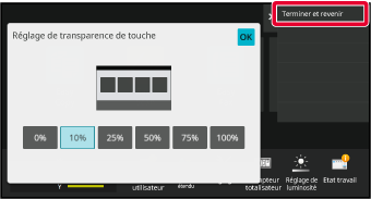 Les réglages sont enregistrés dans la machine et ils sont appliqués.Vous pouvez modifier la transparence des