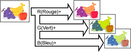 Cette fonction permet d'accentuer ou d'atténuer l'une des trois