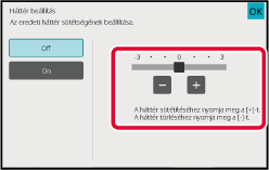 A [Háttér beállítás] menüben a [+] gombbal a hátteret sötétíti,