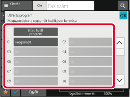 A programban tárolt funkciónak megfelelően helyezze az eredetit az automatikus dokumentumadagoló tálcájába vagy a dokumentumüvegre.A műveleti panelen koppintson az [Program behívása] gombra.
