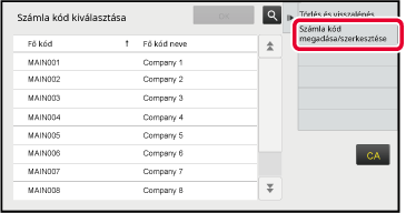 A műveleti panelen koppintson az [Számla kód megadása/szerkesztése] gombra.