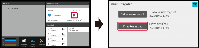 a rendszerbeállítások [Vírusvizsgálat beállítása] pontjában. A dátum és az idő