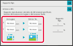 Impostazione del rapporto di ingrandimento desideratoSpecificare le dimensioni X e Y del formato dell'immagine e di quello dell'output.
