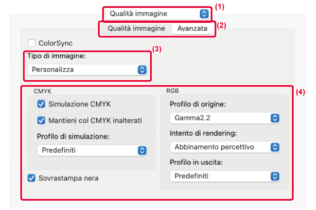 del colore di macOS, selezionare la casella di controllo [ColorSync]
