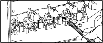 Open de voorklep terwijl u op beide zijden van de convexe delen drukt.