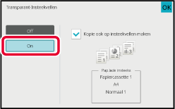 Als u een kopie wilt maken op invoegvellen, tikt u op het selectievakje [Kopie ook op insteekvellen maken] om dit in te stellen op