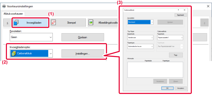 - Selecteer [Carbonafdruk] bij 'Invoegbladenoptie' en klik op de toets