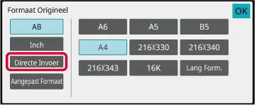 Tik op de toets [Directe Invoer] en voer het scanformaat in.