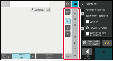 Wanneer u op de toets [Sorteren] tikt, wordt een lijst