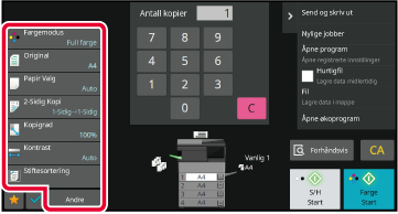 Trykk på [Start farge]- eller [S/H Start]-tasten for å begynne å kopiere.