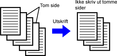 Hvis den skannede originalen inneholder tomme sider, blir de tomme sidene utelatt under utskrift. Maskinen oppdager tomme sider, og skriver dem ikke ut. Dette eliminerer unødvendig utskrift, og du slipper å se etter tomme sider før utskrift.