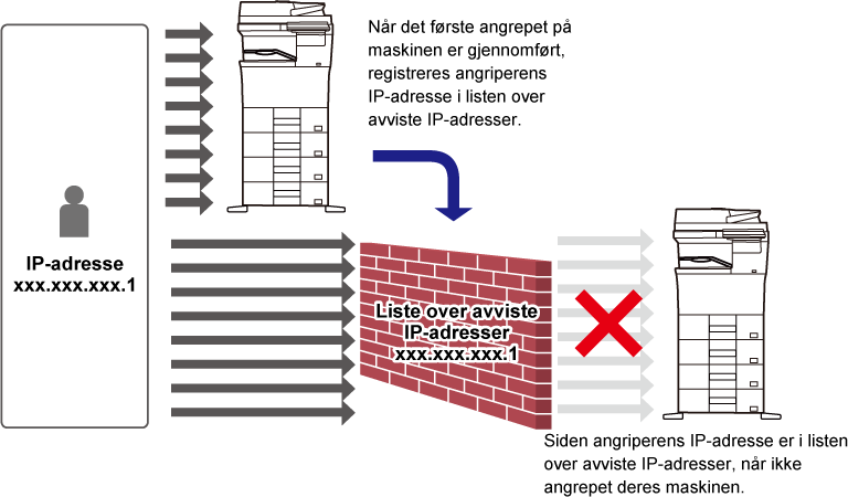 Angi [Tving oppbevaring] eller [Deaktiver jobber unntatt utskriftsholding] når funksjonen som skal brukes, er dokumentarkivering. Når [Deaktiver jobber unntatt utskriftsholding] er spesifisert, vil skriverjobber der dokumentarkivering ikke er spesifisert i skriverdriveren, bli avbrutt. |