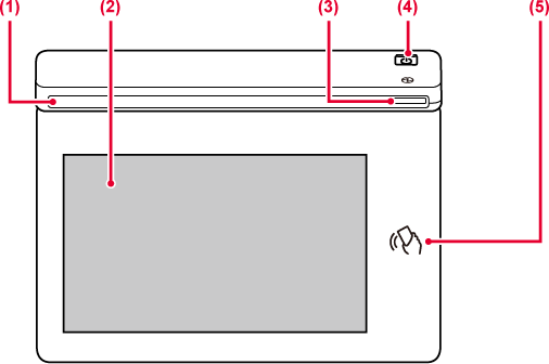 się przycisk [Zasilanie], wskaźnik informacyjny oraz panel dotykowy.