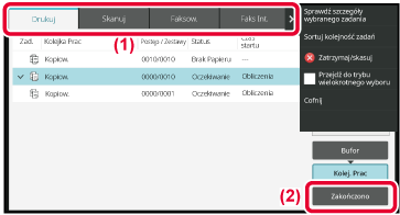 Premir a tarefa com o conteúdo a verificar e, em seguida, premir [Verificar detalhes do trabalho seleccionado] no painel de ação.