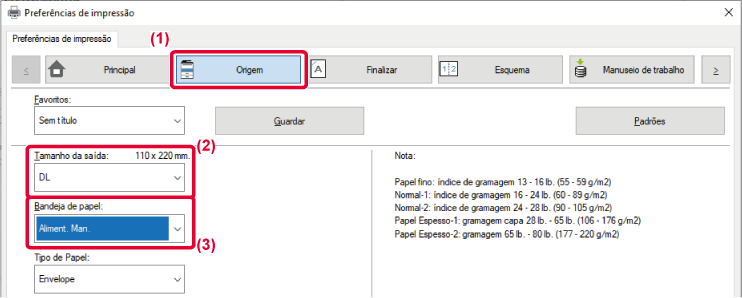 envelope, [Tipo de Papel] é automaticamente definido para [Envelope].