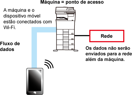 via Wi-Fi. Neste modo, a comunicação com a rede à qual a máquina