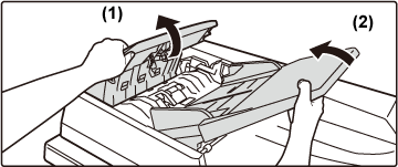 Deschideți alimentatorul automat de documente şi îndepărtați soluția de curățat sticlă.
