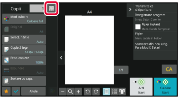 MODURILE DE COPIERE COLORSELECTAREA ORIENTĂRII ŞI DIMENSIUNII ORIGINALULUISELECTAREA TĂVII DE HÂRTIE PENTRU COPIERECOPIEREA AUTOMATĂ FAŢĂ-VERSOMĂRIREA/MICŞORAREA SEPARATĂ A LUNGIMII