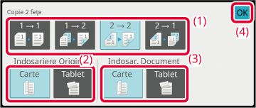 PROCEDURA DE BAZĂ PENTRU REALIZAREA COPIILORSelectaţi modul de copiere faţă-verso.