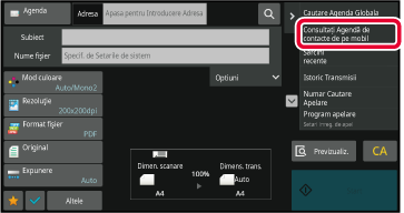 Când folosiți agenda în ecranul de scanare uşoară sau modul
