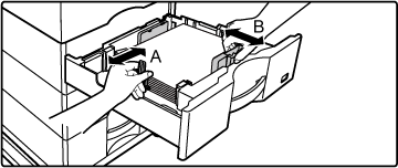Переместите направляющие пластины A и B в лотке в положение максимального размера.