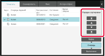 обработки, коснитесь кнопки [Буфер], [Очередь], [Заканчивать].