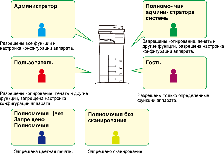 пользователям можно запретить работу с аппаратом или с его определенными