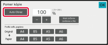 Pomer zmenšenia alebo zväčšenia sa automaticky vyberie na základe veľkosti originálu a vybranej veľkosti papiera.