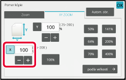 JEDNODUCHÝ REŽIMŤuknite na tlačidlo [Pomer kópie] a potom na kartu [XY ZOOM].