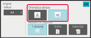 Dotknite sa tlačidla [Otočenie obrázka] s rovnakou orientáciou, akú má vložený originál.