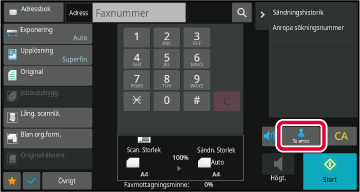 Tryck på knappen [Mottagning] för att ta emot ett fax.