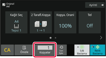 ekran anahtarını taşıyarak, fotokopi sayısını belirtin.
