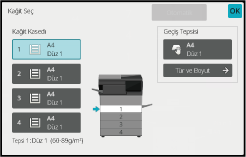 kağıda sahip tablayı otomatik olarak seçmek üzere ayarlanmıştır (Otomatik