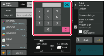 • Hedef adresi girdikten sonra, programlanabilir klavyeyi kapatmak için [TAMAM] tuşuna dokunun.