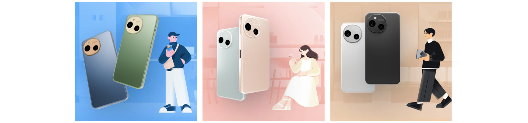 The device's body colors are inspired by three fashion styles: "Casual", "Kireime", and "Basic". Users can choose from a rich selection of six colors, including Denim Navy, which evokes the hue of jeans. Additionally, alongside the launch of this model, official cases will be available. There will be six silicone cases that match the device colors, as well as special cases created in collaboration with the sneaker brand "SPINGLE". Furthermore, Sharp-certified accessories will feature cases designed with denim fabric in collaboration with denim brands "KOJIMA GENES®" and "BLUE SAKURA".